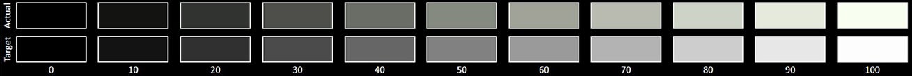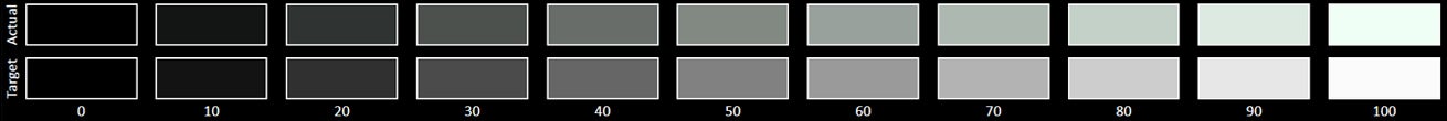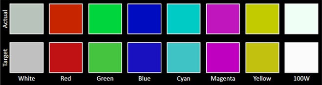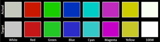 Значение Дельта E для каждого измеренного цвета отражается в ‘ΔE 2000’, в то время как ‘Target Y’ выражает желаемую интенсивность цвета. Уровень яркости каждого цвета показывает ‘Y’, признанный идеальным, если Дельта E меньше 2.