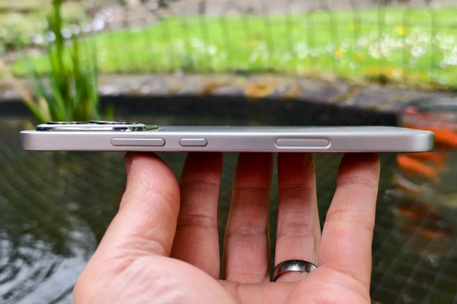 На Ощупь он так же хорошо собран, как и бюджетный конкурент, удовлетворительно тонкий — всего 7,3 мм, и легкий, без ощущения игрушечного веса — 171 г. Плоские грани облегчают захват, а рамки экрана — одни из самых тонких, которые я видел по этой цене. Однако пыле- и водонепроницаемость IP64 вполне приемлема, поскольку некоторые конкуренты теперь имеют защиту IP68.