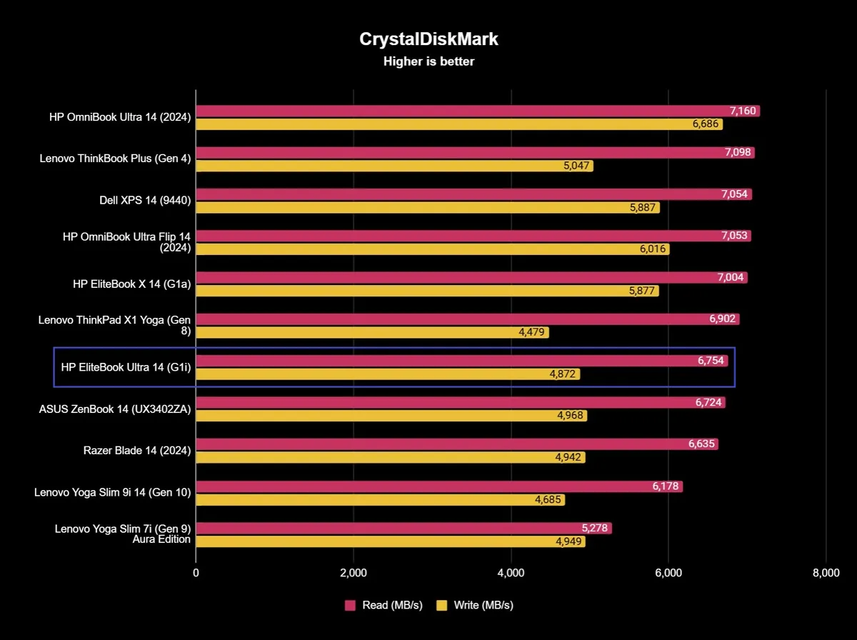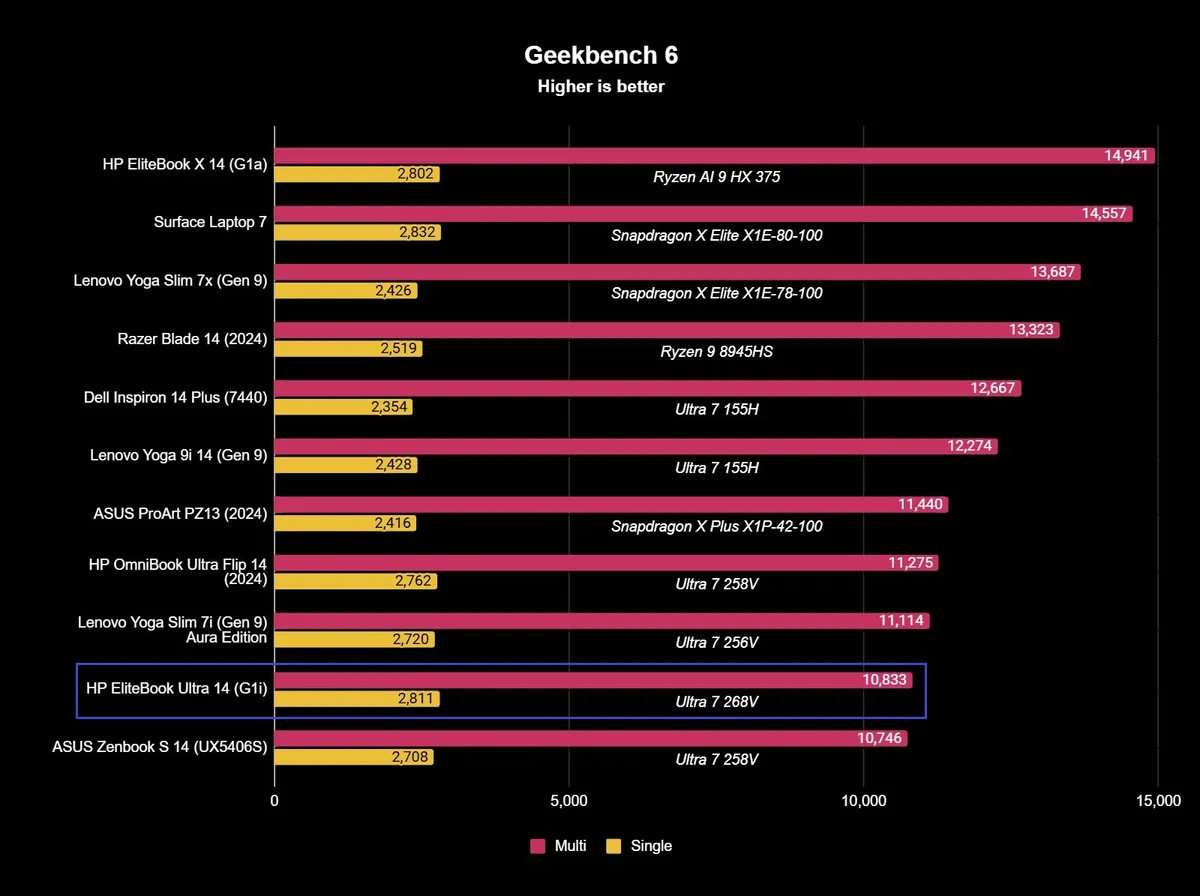 Чтобы понять, что я имею в виду, достаточно взглянуть на результаты тестов производительности, приведённые выше. Эти чипсеты Intel серии V никогда не претендовали на звание монстров производительности, имея всего 8 ядер, но EliteBook Ultra уступает ноутбукам с аналогичным оснащением в многоядерных задачах.