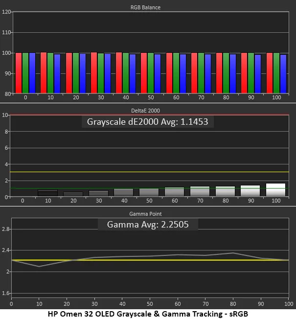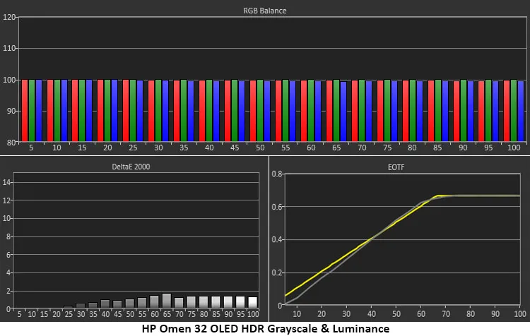 HP Omen 32 OLED 4K: отслеживание оттенков серого и гаммы