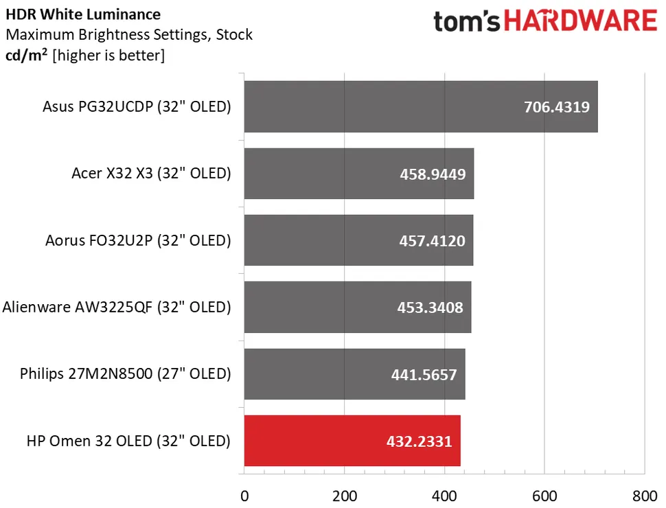 HP Omen 32 OLED 4K: после калибровки до 200 нит