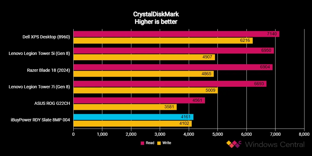 Я также провёл несколько тестов производительности, в том числе с помощью 3DMark Time Spy GPU и CrystalDiskMark SSD. Система показала хорошие результаты, за исключением того, что SSD-накопитель WD Blue уступил другим ПК, которые мы недавно тестировали. Если вы вносите какие-то изменения в предустановленную конфигурацию при оформлении заказа, я бы порекомендовал обновить эту область.