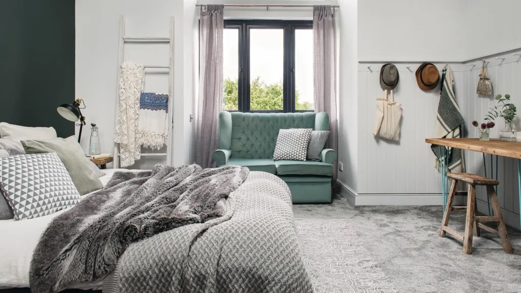 Марианна Шиллингфорд, креативный директор Dulux, советует: «Поэкспериментируйте с яркими цветами, чтобы сделать эркер в вашей спальне центром внимания. Выбирайте насыщенные оттенки, чтобы превратить эркер в эффектный элемент дизайна вашей спальни. Такие цвета, как наш Breton Blue или Emerald Glade, мгновенно привлекут внимание, особенно в сочетании с нейтральными стенами». Несмотря на свою яркость, эти успокаивающие цвета идеально подходят для спален, поскольку они связаны с природой и помогают вам засыпать под шелест листьев или шум океанских волн.