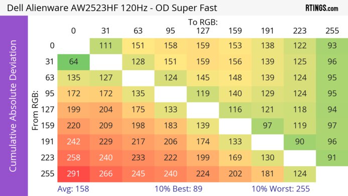Лучшим 25-дюймовым монитором, который мы протестировали, является Dell Alienware AW2523HF. Как и большинство мониторов такого размера, он предназначен для киберспортивных игр, так как имеет высокую частоту обновления 360 Гц и поддержку VRR для уменьшения разрывов экрана. Он обеспечивает стабильно быстрое время отклика при любой частоте обновления, поэтому быстро движущиеся объекты выглядят чётко. Он тоже стоит недорого, но если у вас ограниченный бюджет, ViewSonic XG2431 — ещё один отличный 24-дюймовый монитор, но у него более низкая частота обновления 240 Гц, чем у Dell.