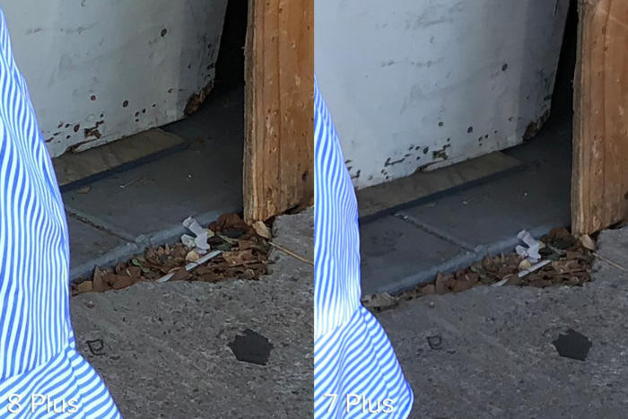 На снимке с 8 Plus можно видеть довольно много цветового шума, но это определенно более резкое изображение