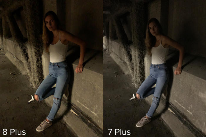 Говоря о недостаточном освещении, iPhone 8 Plus справляется гораздо лучше, чем 7 Plus, когда освещение снижается. Посмотрите сами: мы сделали тестовые снимки в одной из самых темных частей подвала, и результаты очевидны. Не то чтоб я рекомендовал вам делать фотографии в таком темном окружении, но если вам действительно нужно производить съемку в условиях недостаточного освещения, с 8 Plus вы получите гораздо лучшие результаты.