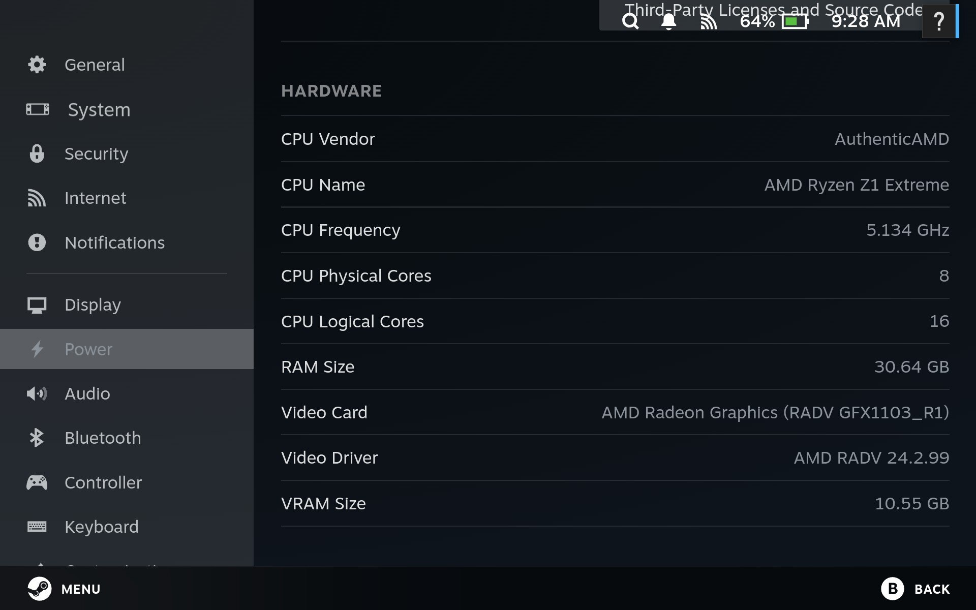 Системы SteamOS постоянно использовали профиль электропитания «Производительность», в то время как Legion Go S под управлением Windows 11 использовал профиль электропитания «Производительность» при работе от батареи и профиль «Пользовательский» (40 Вт) при подключении к сети переменного тока.