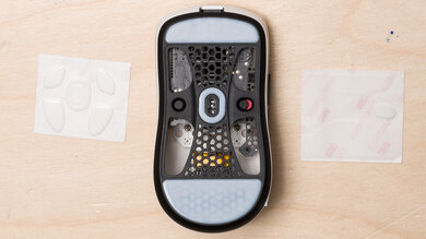 Мы рекомендуем Hitscan Hyperlight как лучшую лёгкую игровую мышь в среднем ценовом сегменте. Эта модель на самом деле легче, чем наша лучшая мышь Razer Viper V3 Pro, и весит чуть больше 40 г. Отчасти это связано с её меньшими размерами, но Hyperlight также имеет открытую нижнюю панель, что позволяет сэкономить несколько граммов. Несмотря на лёгкий вес, качество сборки отличное, но внутри скапливается пыль и мусор. Что касается формы, то она симметричная, с горбинкой среднего размера, которая подходит для всех типов хвата и для большинства размеров рук.