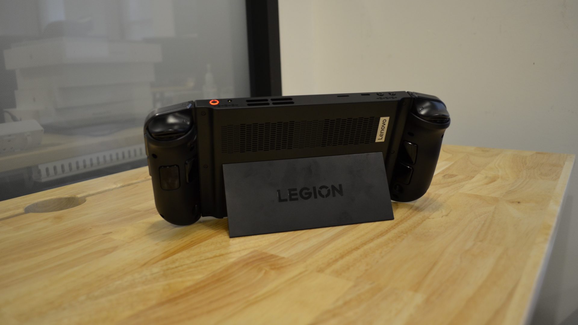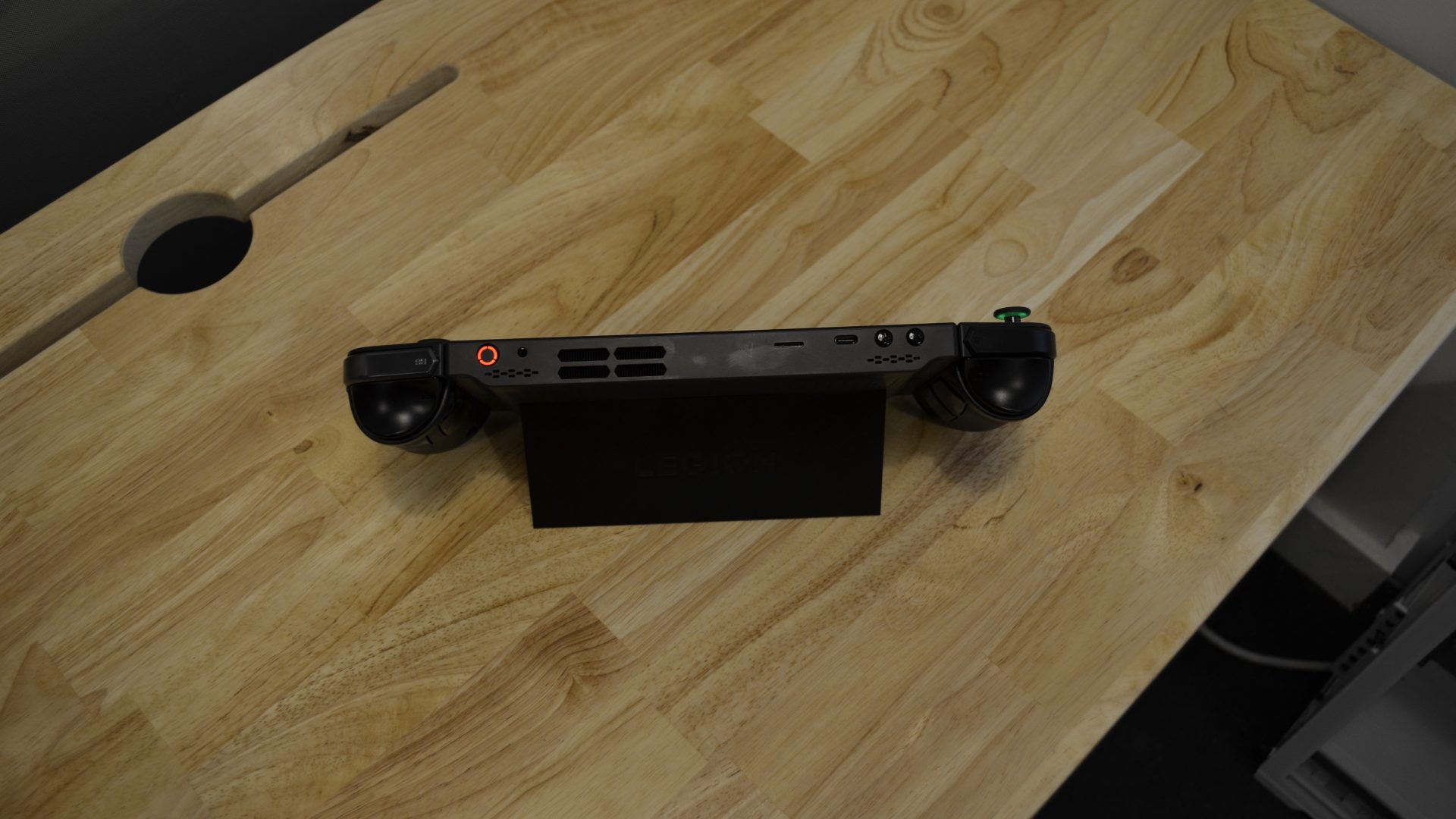 Lenovo понимала, что вес устройства нужно компенсировать, и здесь на сцену выходит откидная подставка. Она встроена в корпус и сделана очень качественно — надежны и сама ножка, и шарниры. Это позволяет поставить Legion Go на любую относительно ровную поверхность без необходимости в отдельной док-станции и использовать консоль как мини-ПК или просто играть с геймпадом.