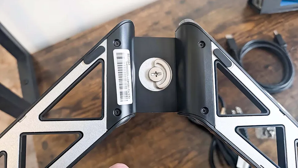 Хотя Lenovo Legion R27fc-30 — не самый изящный игровой монитор на рынке, его чёрное пластиковое основание и подставка выглядят хорошо и при этом очень прочные и надёжные. Мне ни разу не пришлось беспокоиться о том, что монитор будет шататься. Однако треугольное основание занимает много места, из-за чего на столе может не хватать места для других устройств и аксессуаров. Например, мне пришлось сдвинуть свою док-станцию ROG Ally левее, чтобы она не мешала базовому пластику.