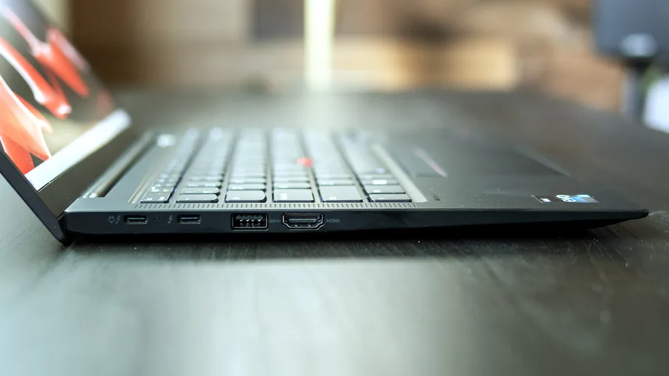 Возможности подключения также являются одним из преимуществ X1 Carbon: два порта Thunderbolt 4 (USB Type-C), пара портов USB Type-A со скоростью 5 Гбит/с, один видеовыход HDMI 2.1 и разъем для наушников/микрофона 3,5 мм. Что касается беспроводной связи, то здесь есть Wi-Fi 6E и Bluetooth 5.1 от сетевой карты Intel AX211. WWAN (4G/5G) не входит в комплект и отсутствует в нашей модели.