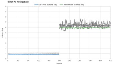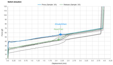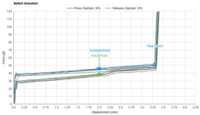 Если вы хотите удвоить скорость, обратите внимание на переключатели Kailh Super Speed Silver. Они обеспечивают такую же выдающуюся производительность с точки зрения задержки, но работают заметно плавнее, даже без смазки, и имеют немного меньшее расстояние до срабатывания. Мы не рекомендуем их всем подряд из-за очень слабого усилия срабатывания, которое может показаться некоторым слишком чувствительным и увеличить вероятность случайных нажатий клавиш, что может привести к катастрофе в соревновательных ситуациях.