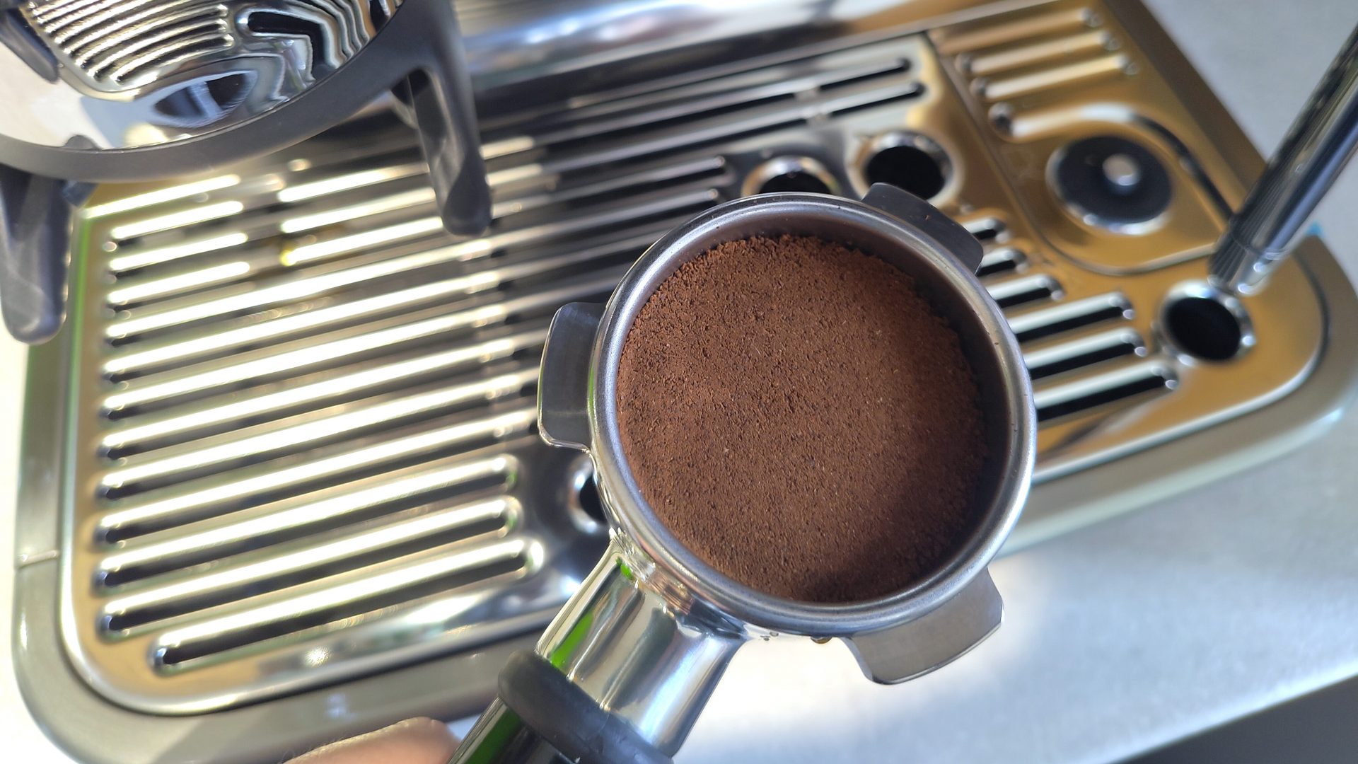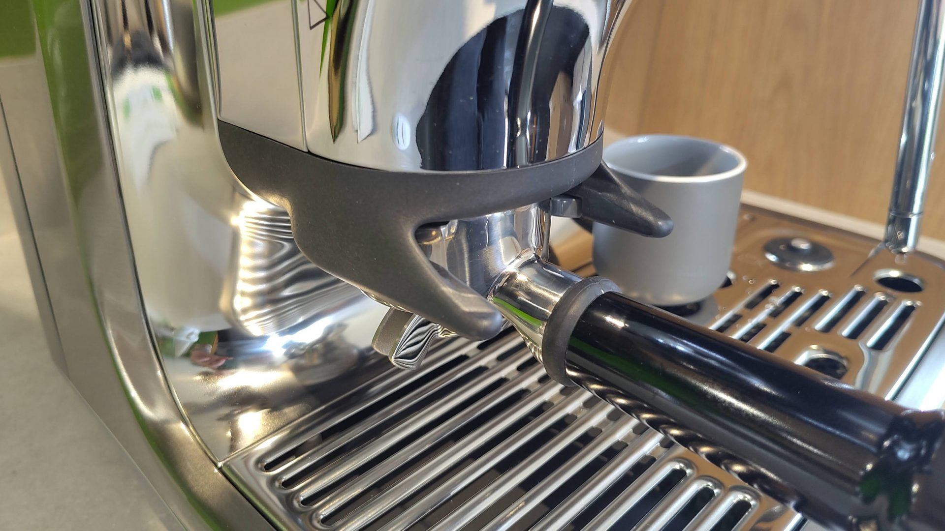Эта машина также имеет чрезвычайно удобный рычажный темпер. После того как вы смололи зерна прямо в фильтр-корзину, дважды опустите рычаг с левой стороны машины, чтобы спрессовать их в идеальную шайбу. Машина может даже регулировать количество молотого кофе (дозу) в зависимости от выбранных вами зерен и размера помола.