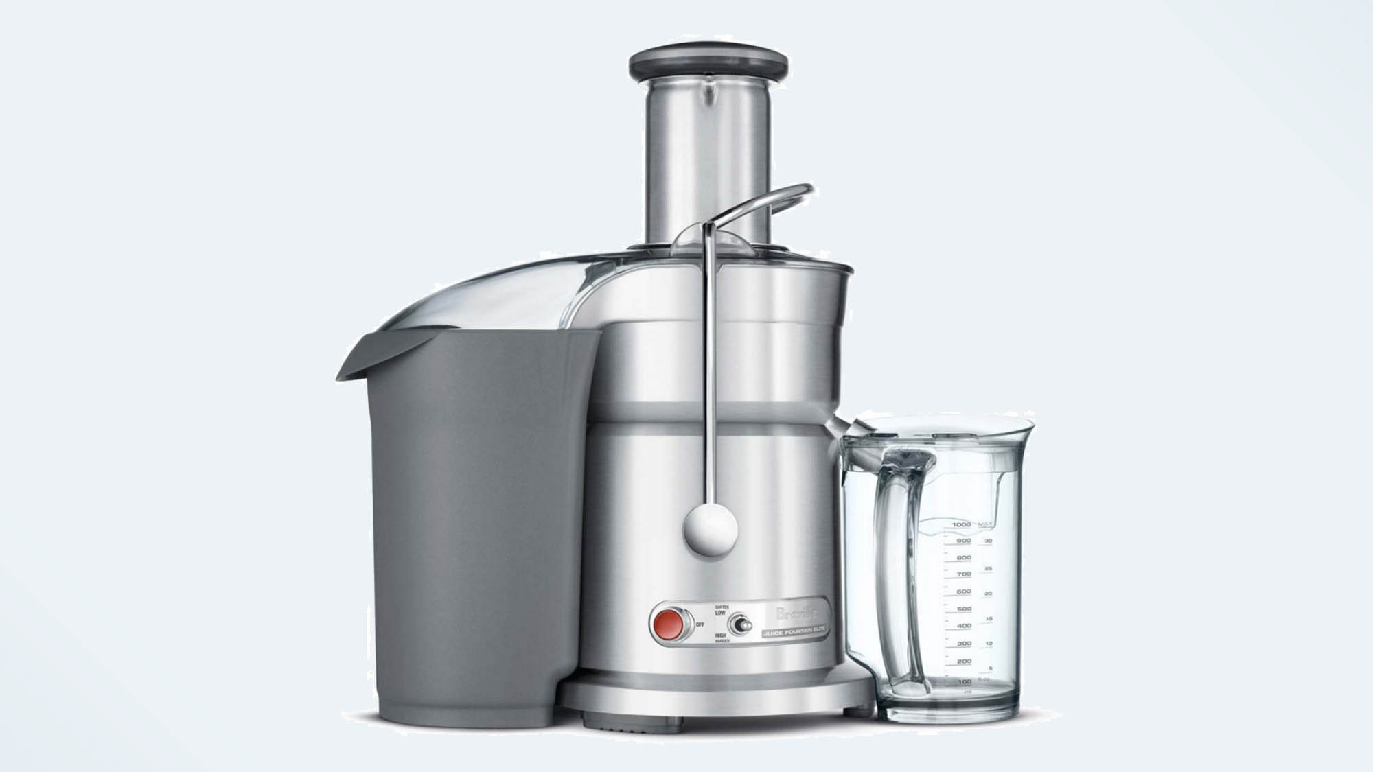 Breville Juice Fountain Elite — дорогая для центробежной соковыжималки, но она обладает мощностью в 1000 Вт. Это помогает ей обрабатывать более твердые продукты, такие как капуста кале и морковь, легче, чем менее дорогие центробежные модели, сохраняя при этом простой дизайн для эффективной сборки и очистки.