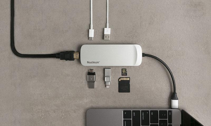 Качественный 7-портовый Kingston Nucleum может похвастаться семью портами от одного подключения USB-C, включая выход 4K HDMI (30 Гц), пропускную способность (60 Вт) для зарядки подключенных устройств, два порта USB-C (5 Гбит /с), два порта USB-A (5 Гбит /с) и слоты SD и microSD.