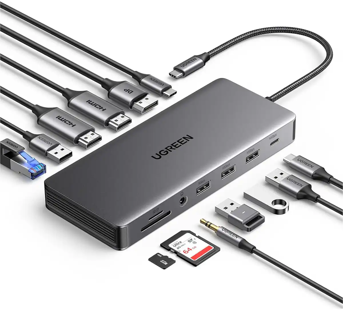 Док-станция Ugreen Revodok Pro 13-в-1 с тремя дисплеями — лучший USB-C-концентратор для трёх дисплеев (Windows)