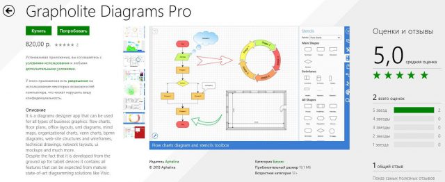 Конечно, 820 руб. за мобильное приложение — это немало. Но если вам нужно выполнить какой-нибудь чертеж, начиная от структурной схемы или технического эскиза и заканчивая каркасной моделью, программа Grapholite Diagrams Pro предоставит все необходимые для этого средства. Интерфейс подходит для оборудования с сенсорным экраном, а отличная интеграция приложения с чудо-панелью упрощает совместное использование, печать и экспорт файлов в различные форматы.