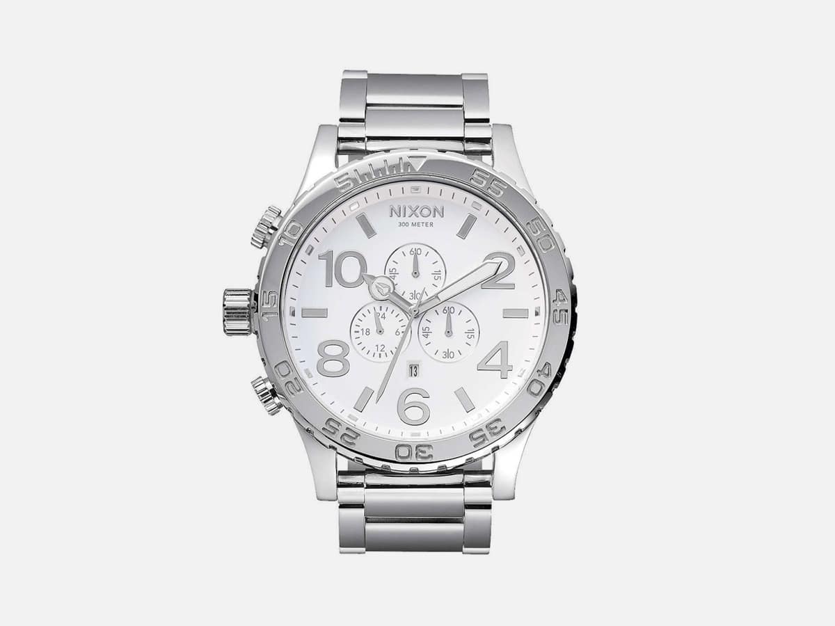 При диаметре 51 мм это, пожалуй, самые большие часы, которые я упоминал в этой статье, и поэтому для многих людей они, вероятно, будут слишком большими. Но если у вас массивные запястья, возможно, вам стоит обратить на них внимание. Nixon Chronograph большие и тяжёлые, но, на мой взгляд, немного переоценены и определённо отражают модную направленность бренда, а не его склонность к часовому дизайну (который, как правило, намного скромнее по размеру). Но если вам нравится, значит, нравится. Что бы я ни сказал, это не изменится. Возможно.