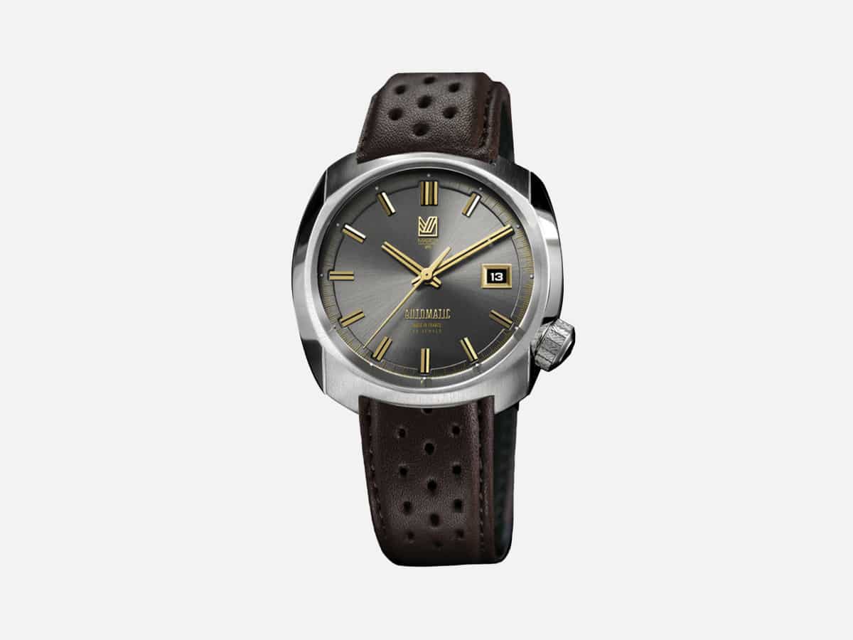 Фантастическая маленькая модель, которая выглядит так, будто сошла со страниц книги о традиционном часовом деле. Marine Auto — это прекрасная модель, сочетающая винтажный дизайн с современной архитектурой механизма. Блестящий белый циферблат великолепен, а дополнительный циферблат на 6 часах, показывающий текущие секунды, выглядит превосходно. Стрелки имеют красивую форму, а в качестве механизма используется надёжный ETA/Unites 6498-1 с ручным заводом.