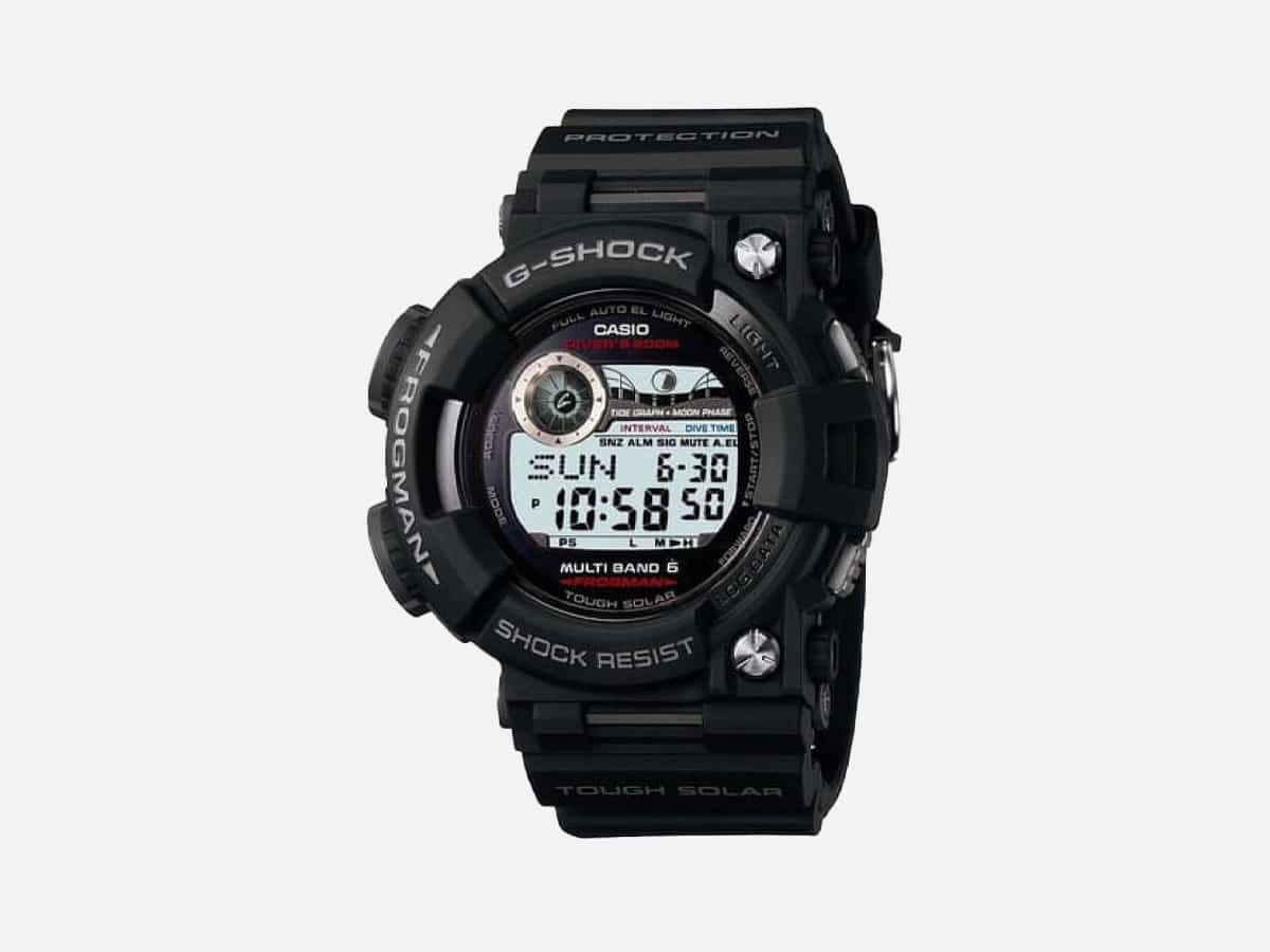 Ах, эти надёжные и всегда безотказные G-Shock. Если вы подписаны на меня в Instagram, то знаете, как сильно я люблю свои маленькие G-Shock. Они прочные, простые в использовании и определённо заставят вас улыбнуться, когда вы на них посмотрите. Frogman — это сверхпрочные часы, которые используют энергию Солнца для работы. Для любителей практичных часов это идеальный универсальный вариант, который можно носить в любых условиях, не беспокоясь о нём. Простое дополнение к списку лучших доступных часов.