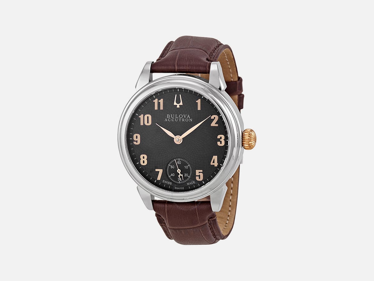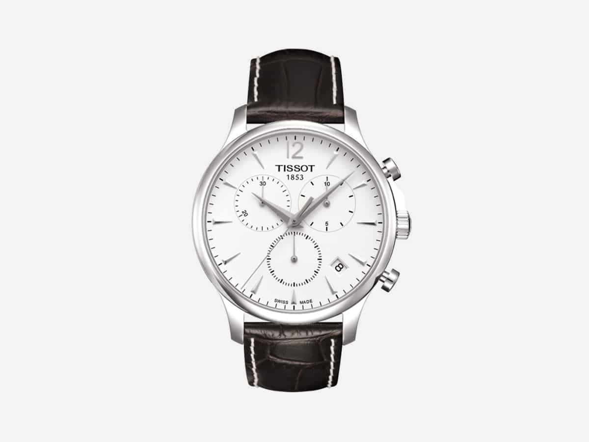Открывает наш список лучших доступных по цене часов T-Classic Tradition (да, это кварцевые часы) — просто красивые классические часы, которые можно носить с разными ремешками, чтобы изменить их внешний вид и назначение. Большие дополнительные циферблаты, открытая заводная головка и кнопки-грибы выглядят замечательно, а мечевидные стрелки придают часам элемент класса и неподвластности времени. Учитывая цену и механизм, вы можете простить себе покупку этих часов только из-за их внешнего вида. Эта швейцарская жемчужина в винтажном стиле, которую вы будете рады носить в любой ситуации.