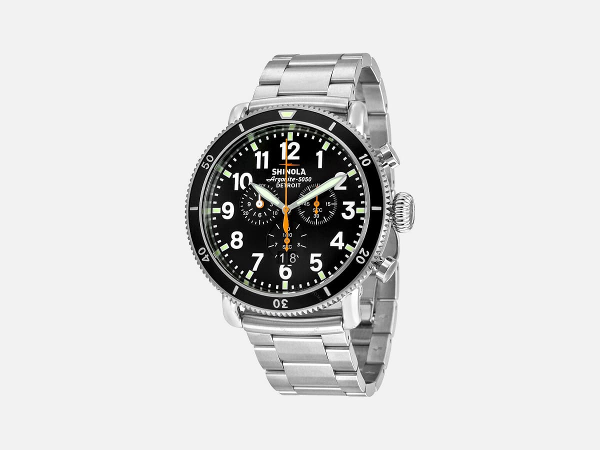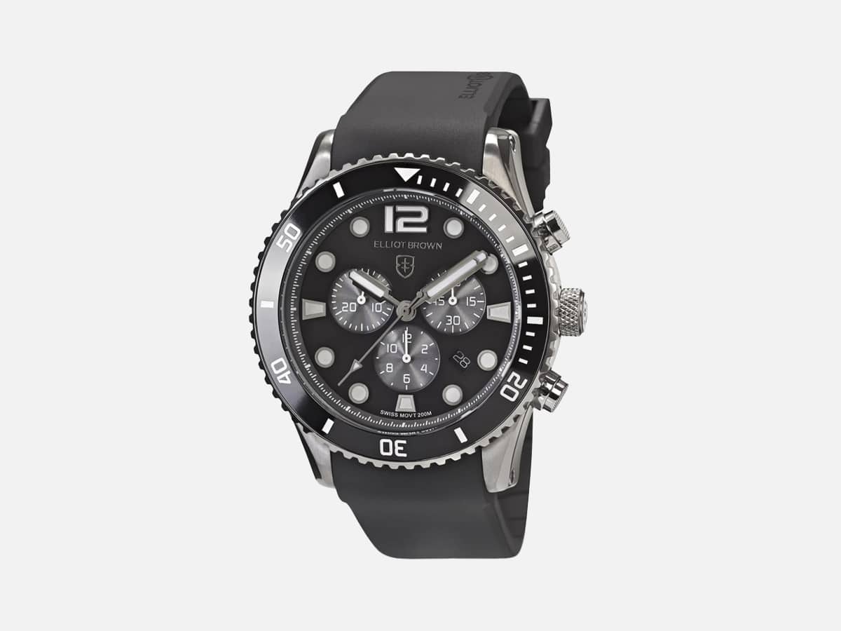 Часы Bloxworth сочетают в себе характерные черты дайверского хронографа с современным методом изготовления корпуса, создавая изделие, неподвластное времени по дизайну и чрезвычайно удобное для ношения. Корпус из нержавеющей стали gunmetal PVD придает часам очень универсальный вид, в то время как выступающие кнопки и заводная головка делают изделие больше своих 44 миллиметров. Достойная модель, но немного завышенная, учитывая тот факт, что в ней используется кварцевый механизм. Она не достойна прозвища “роскошная”. Тем не менее, они входят в наш список лучших доступных по цене часов, так что будьте уверены, они по-прежнему чертовски хороши!
