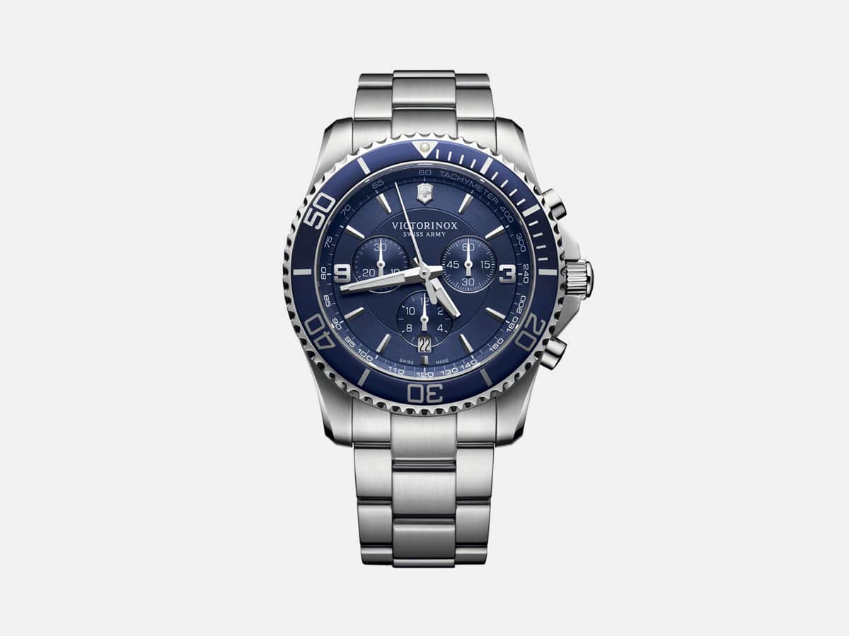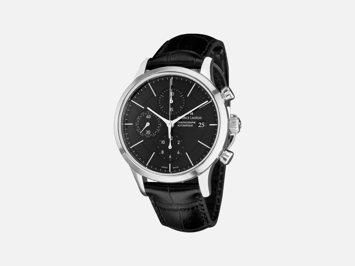 Автоматические часы-хронограф с красивым дизайном — обязательный элемент любой коллекции и настоящее удовольствие, когда речь идёт о лучших часах по доступной цене. В часах-хронографе Maurice Lacroix используется контраст между чёрным и полированным серебром, что позволяет создать эффектные часы, которые можно носить как в повседневной жизни, так и в официальной обстановке. Наличие окошка даты удивляет, но радует, а открытые кнопки и заводная головка выглядят феноменально. Это прекрасно выполненное изделие, которое может стать идеальным хронографом из представленных в этой статье лучших часов по доступной цене. Один из лучших хронографов в этом ценовом диапазоне.