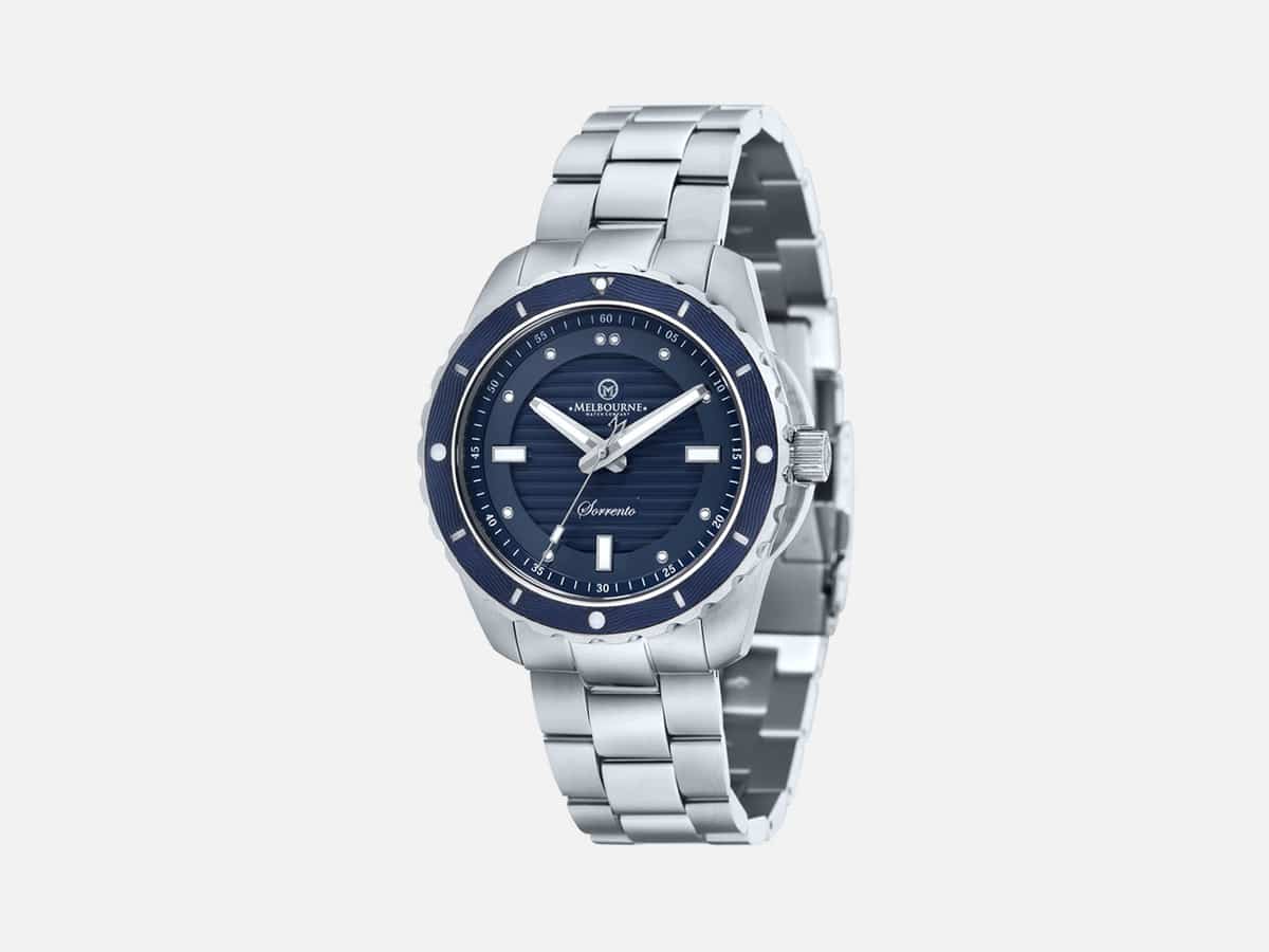 Модель Sorrento — смелая и неподвластная времени. Она сочетает в себе многослойный керамический циферблат с прочным корпусом для дайвинга, а также двухслойный безель с гравировкой. Прочный стальной браслет завершает образ Sorrento, гарантируя, что это хорошая инвестиция. Этот бренд из Мельбурна предлагает эстетически приятное, но простое дополнение к индустрии часов стоимостью менее 100 000 рублей.