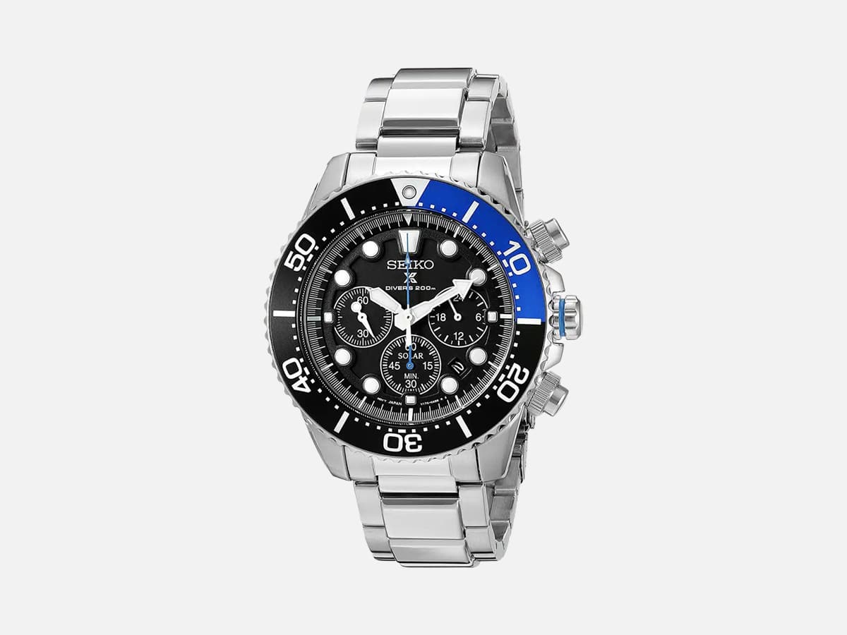 Seiko Prospex Solar, слегка напоминающие Rolex BLNR GMT, — это водонепроницаемые часы, которые я бы всерьёз рассмотрел в качестве первой покупки и включил в наш список лучших доступных часов. Их классический дизайн Seiko неподвластен времени и функционален, а добавление синих акцентов на безеле и стрелке дополнительного циферблата выглядит невероятно. Кнопки-грибы выглядят отлично, и единственная претензия у меня к форме стрелок. Ещё один победитель от Seiko. Предназначение — стать вашими лучшими ежедневными часами для дайвинга.