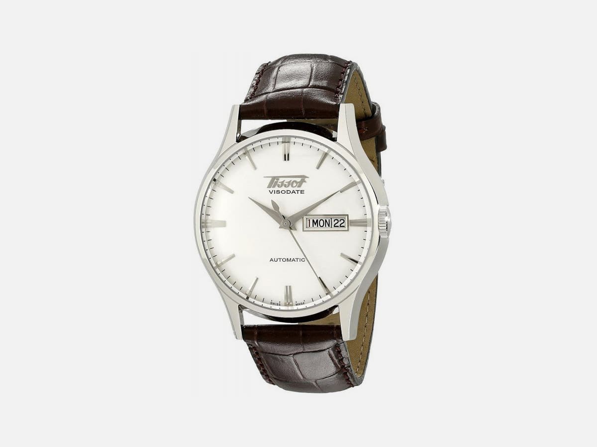 Visodate — одна из самых узнаваемых моделей Tissot и одни из лучших доступных по цене часов, и на то есть веские причины. От встроенной заводной головки до функции отображения даты — эти часы неподвластны времени и универсальны. Резкость циферблата компенсируется плавностью корпуса, и их можно носить как с заводским кожаным ремешком, так и с коричневым кожаным ремешком или ремешком NATO. В любом случае они будут выглядеть чертовски хорошо.