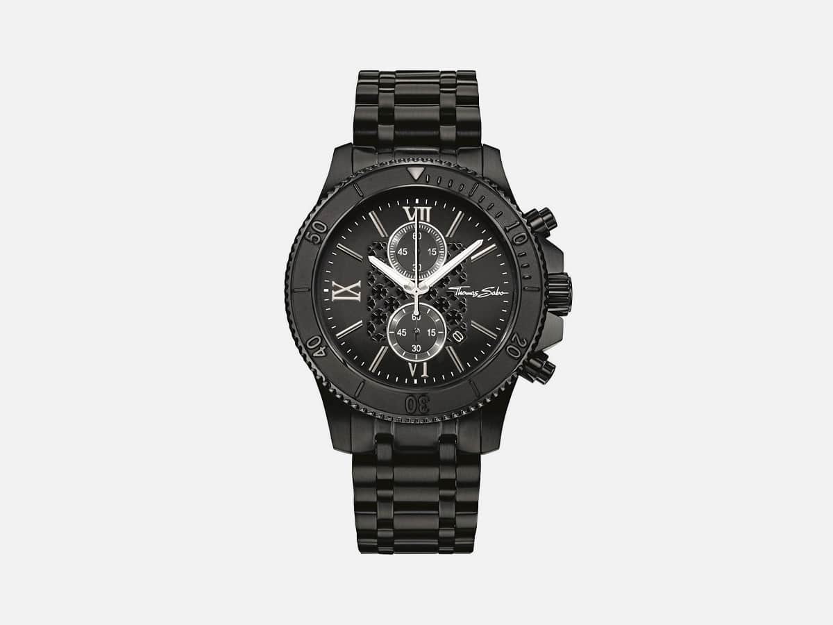 Часы Rebel At Heart от Thomas Sabo, известного скорее своими браслетами, чем часами, не так уж плохи. С эстетической точки зрения они очень хороши. Достаточно большие, чтобы привлекать внимание, но с достаточным количеством деталей, чтобы не выглядеть как пластиковый кусок дерьма. При диаметре 44 мм они будут смотреться на запястье, но благодаря чёрному корпусу на чёрном циферблате будут выглядеть сдержанно. Цены высокие, особенно на кварцевые часы, но в любом случае стоит задуматься, если вам нравятся модные бренды.