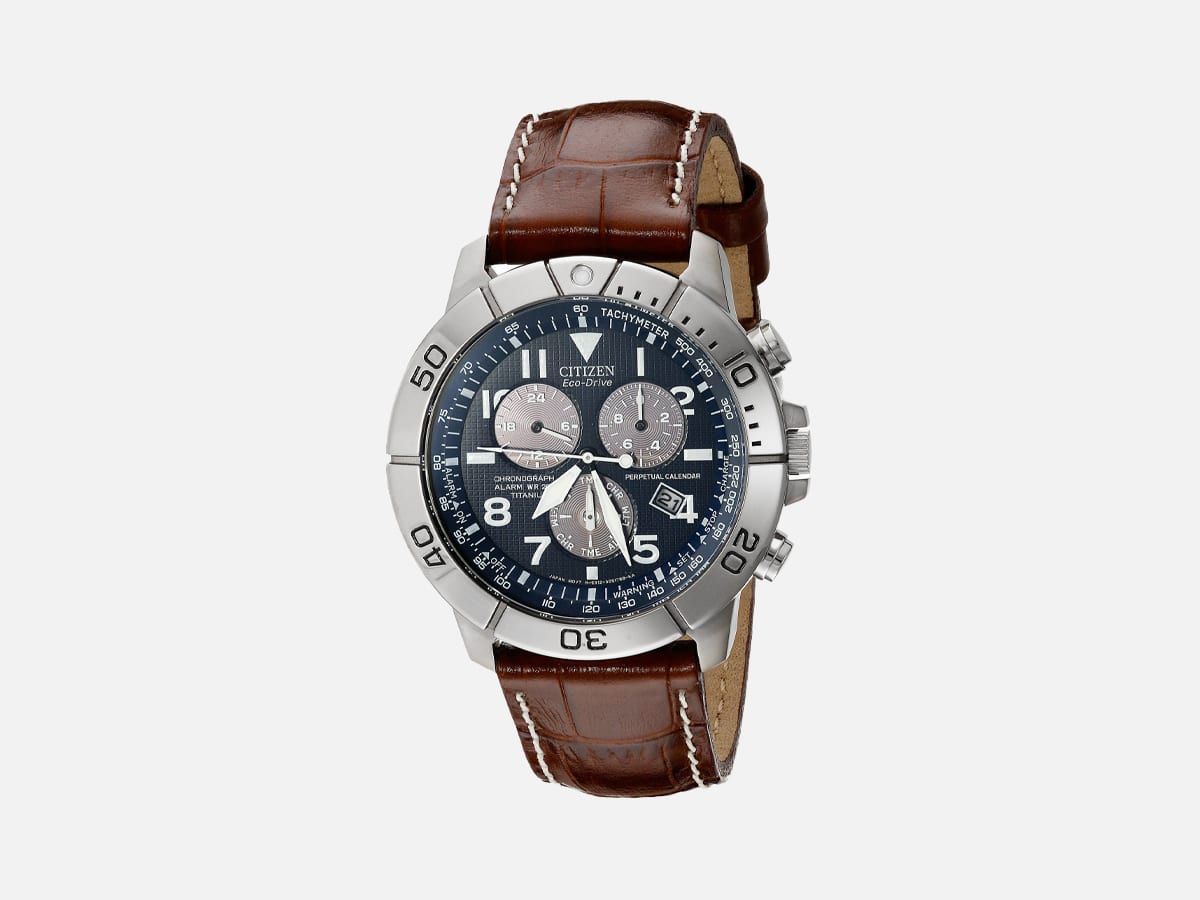 За последние несколько лет компания Braun выпустила несколько очень интересных моделей. Эта модель очень шикарная и современная, в ней используются усложнения, типичные для высококачественных швейцарских часов. Здесь есть очевидный индикатор времени, а также хронограф и вечный календарь, рассчитанный на сто лет. Немного дороговато (поэтому, возможно, иронично, что мы включили их в наш список лучших доступных часов) и, без сомнения, очень спорная эстетика, но всё равно довольно круто.