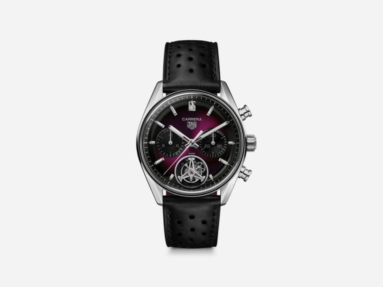 Первым релизом стал 39-миллиметровый хронограф Carrera Ref. CBS2219.FC6607, который отличается впечатляющим дизайном в виде стеклянной коробки, дополняющим новый дизайн циферблата. Визуально это произведение искусства с плавным градиентным переходом от глубокого чёрного по краям к насыщенному фиолетовому в центре. В то же время циферблаты хронографа имеют полностью чёрную отделку azuré, дополненную серебристыми акцентами для большей чёткостии контрастности, что ещё раз подчёркивает мастерство TAG Heuer в области читаемости и эстетики.