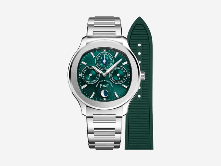 Элегантные и сексуальные часы Piaget Polo Perpetual Calendar Ultra-Thin — это часы, которые кричат о высокой моде. Это смелый новый взгляд на культовую коллекцию Polo. Эта красавица — первые механические часы с вечным календарем в линейке, и они произвели фурор. Эти часы с зеленым циферблатом в корпусе из нержавеющей стали диаметром 42 мм производят яркое первое впечатление. Насыщенный зеленый цвет циферблата сочетается только с прилагаемым сменным резиновым ремешком, который дополняет образ. Внутри Polo Perpetual Calendar Ultra-Thin — настоящее произведение современного искусства. Часы оснащены ультратонким автоматическим механическим механизмом Manufacture Piaget 1255P с вечным календарем, часовым и минутным индикаторами, а также индикатором фаз Луны. Просто потрясающе.
