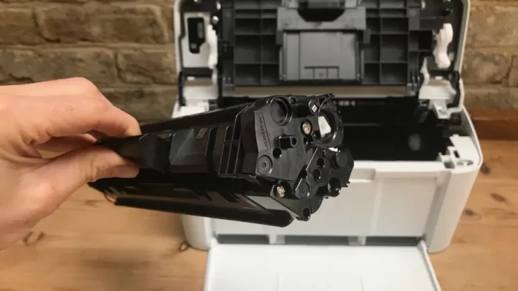 Чтобы уменьшить размер LaserJet Pro M15W, HP отказалась от нескольких функций, так что это очень простое чёрно-белое устройство для печати. У него нет дисплея, только один лоток для бумаги, и он не поддерживает двустороннюю печать. Из-за того, что он монохромный, в нём только один картридж с тонером и барабан, и если вас не отпугнули эти компромиссы, то есть и хорошая новость: это один из самых дешёвых лазерных принтеров.