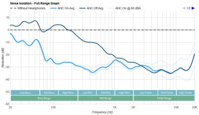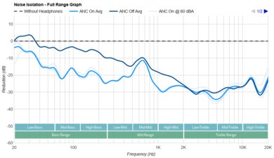 Если вы ищете более бюджетный вариант, возможно, вам понравятся беспроводные наушники Anker Soundcore Life Q30. Они значительно дешевле, чем беспроводные наушники Anker Soundcore Space Q45, но обладают сопоставимой эффективностью шумоподавления. Они очень хорошо блокируют шум, например, гул двигателей на оживлённой улице за окном вашего офиса. Наушники Q45 лучше снижают уровень шума в средних частотах, например, фоновый разговор, но Q30 всё равно неплохо блокируют его.