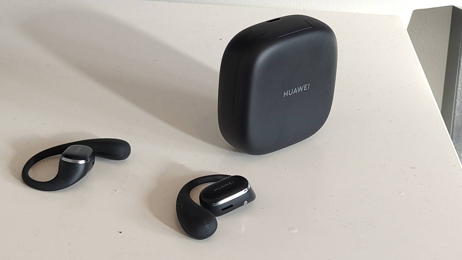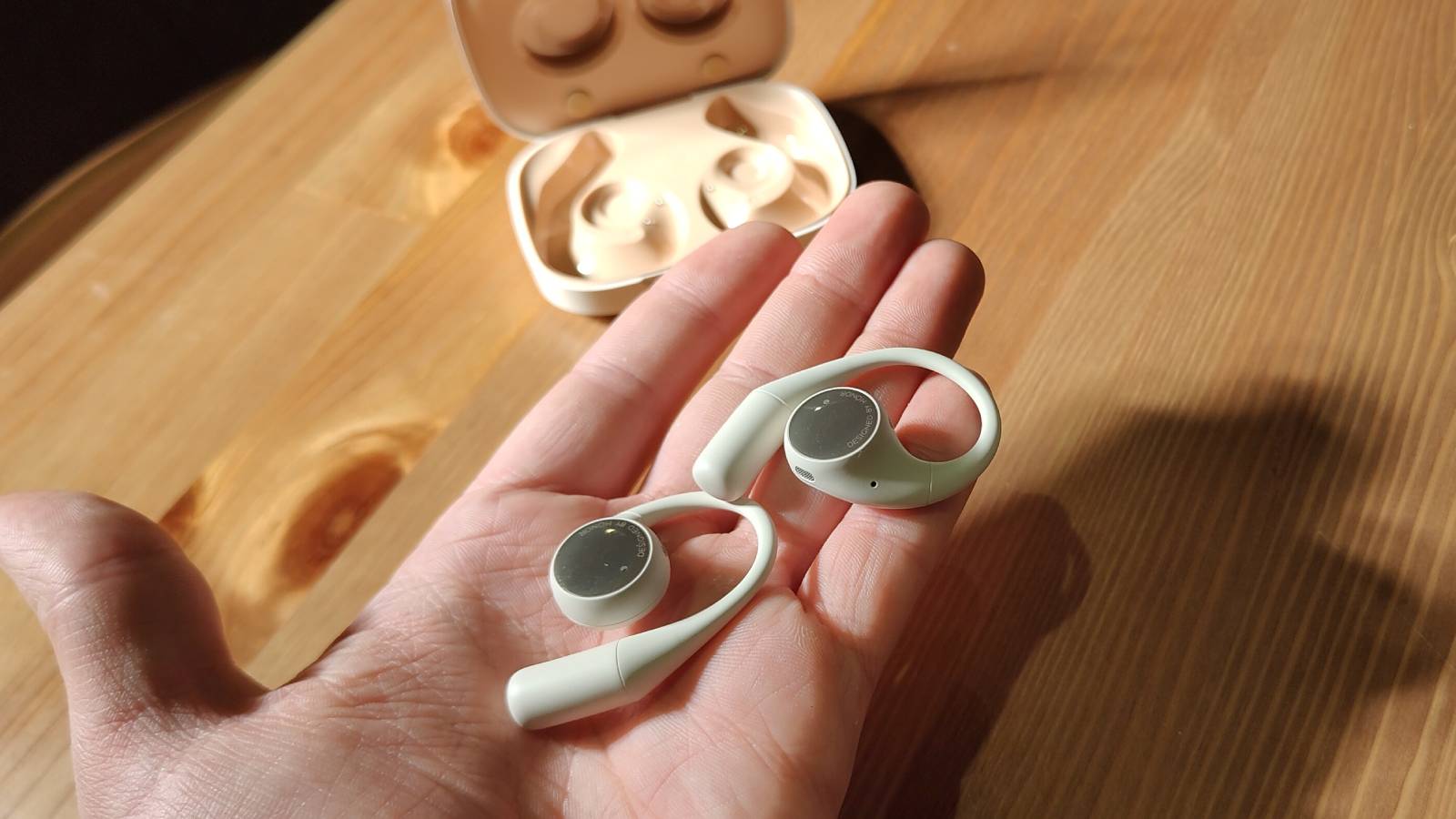 Самый популярный дизайн — это заушная дужка. Модели вроде Shokz OpenFit 2+ и Huawei FreeArc огибают ухо сверху для поддержки. Они ощущаются надежно, особенно на тренировках. Но они не всегда удобны, если вы носите очки, головные уборы или у вас густые волосы.