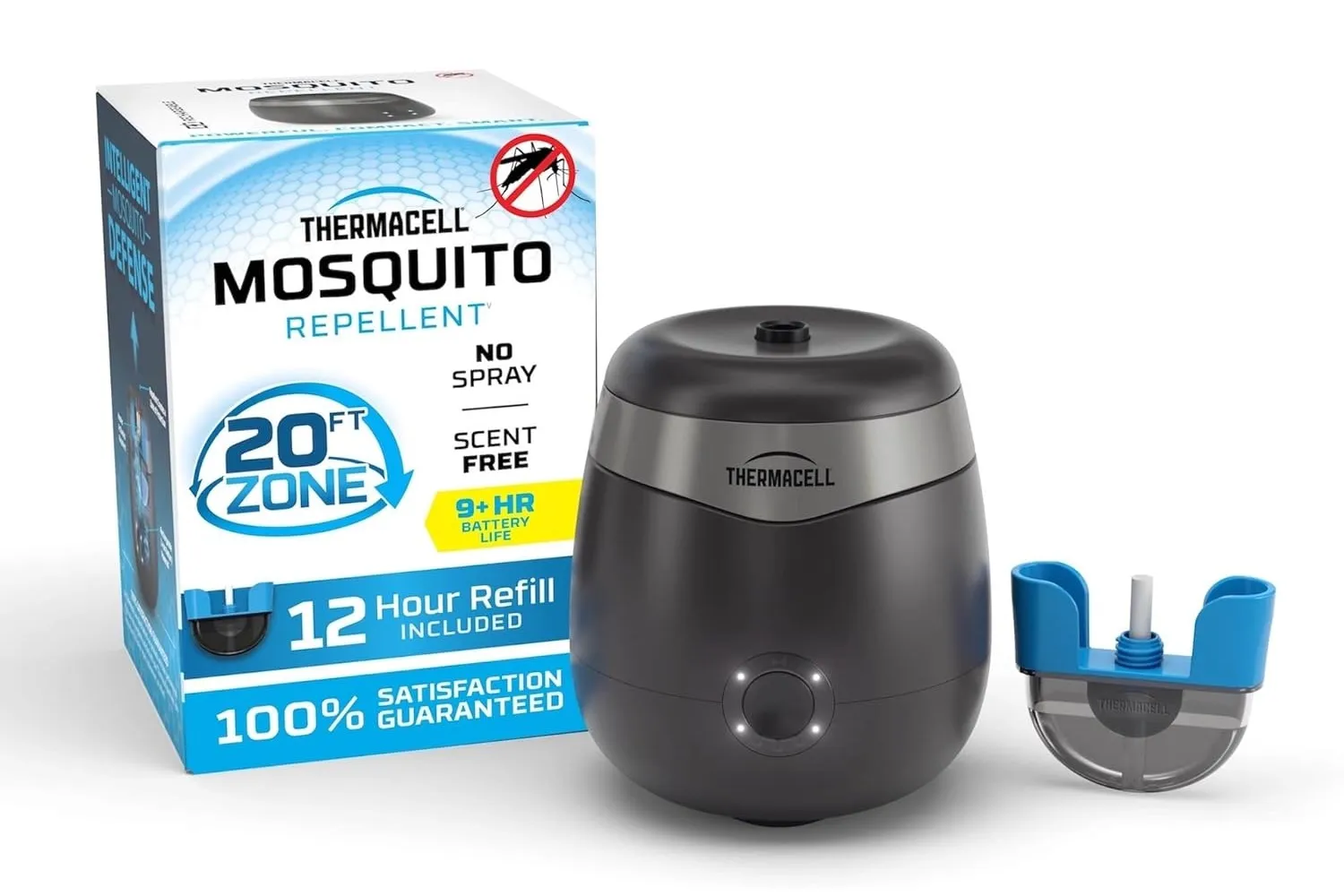 Перезаряжаемый отпугиватель комаров Thermacell E90 обеспечивает защиту от комаров на расстоянии до 6 метров и работает быстро — всего через 15 минут после включения. Его аккумулятор работает 9 часов на полной зарядке, и он безопасен как для людей, так и для домашних животных.