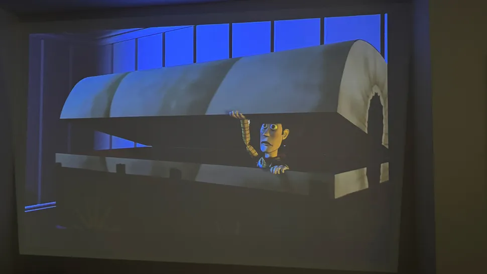 Как только мы настроили проектор, мы были приятно удивлены тем, насколько хорошо он работает. Качество изображения даже в более светлых помещениях было вполне приемлемым, хотя из-за яркости всего в 450 люмен он не подходит для работы при ярком верхнем освещении или на улице при дневном свете.