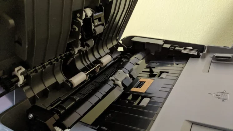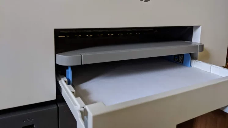 Системы подачи бумаги — не единственная область, которой здесь уделено внимание. Само устройство, кажется, создано для того, чтобы поместиться практически на любом столе. Отчасти это достигается за счёт необычного лотка для бумаги на 150 листов, который выступает вперёд, позволяя сделать принтер ниже, чем другие.