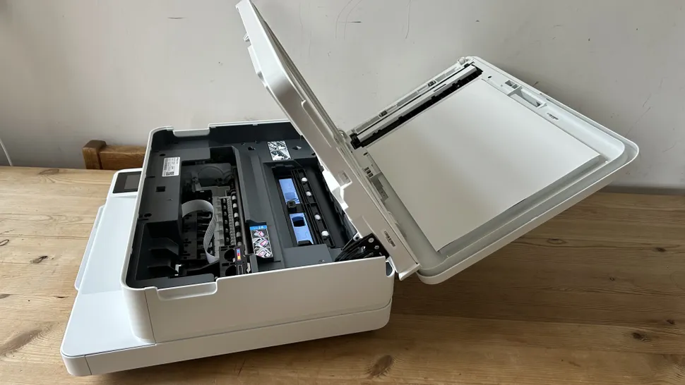 Тем не менее, он может сканировать документы формата Letter, автоматически печатать в двустороннем режиме и имеет вместительный лоток для бумаги на 250 листов. Он также оснащён двухдиапазонным Wi-Fi и Bluetooth, что значительно ускорило процесс настройки. Во время тестирования он довольно быстро печатал со скоростью 15 стр/мин (страниц в минуту) в одностороннем режиме и бесперебойно работал в двустороннем режиме. Страницы с чёрным текстом выглядят чёткими и жирными, а фотографии — особенно яркими, иногда даже слишком.
