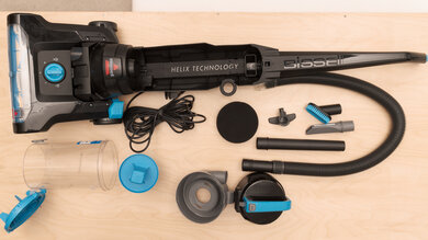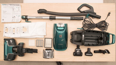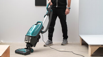 К сожалению, максимальная длина шнура составляет чуть более 8,3 метра, что чуть больше половины длины шнура SEBO, поэтому при уборке в удалённых местах вам придётся менять розетки. Кроме того, несмотря на в целом хорошее качество сборки, он всё же кажется менее прочным, чем SEBO, не говоря уже о более дорогой модели Miele Complete C3. Встроенного отсека для хранения тоже нет, но вы можете закрепить прилагаемый инструмент для чистки обивки, насадку для удаления пыли и щелевую насадку на довольно хлипком на вид зажиме, который крепится к основанию шланга.