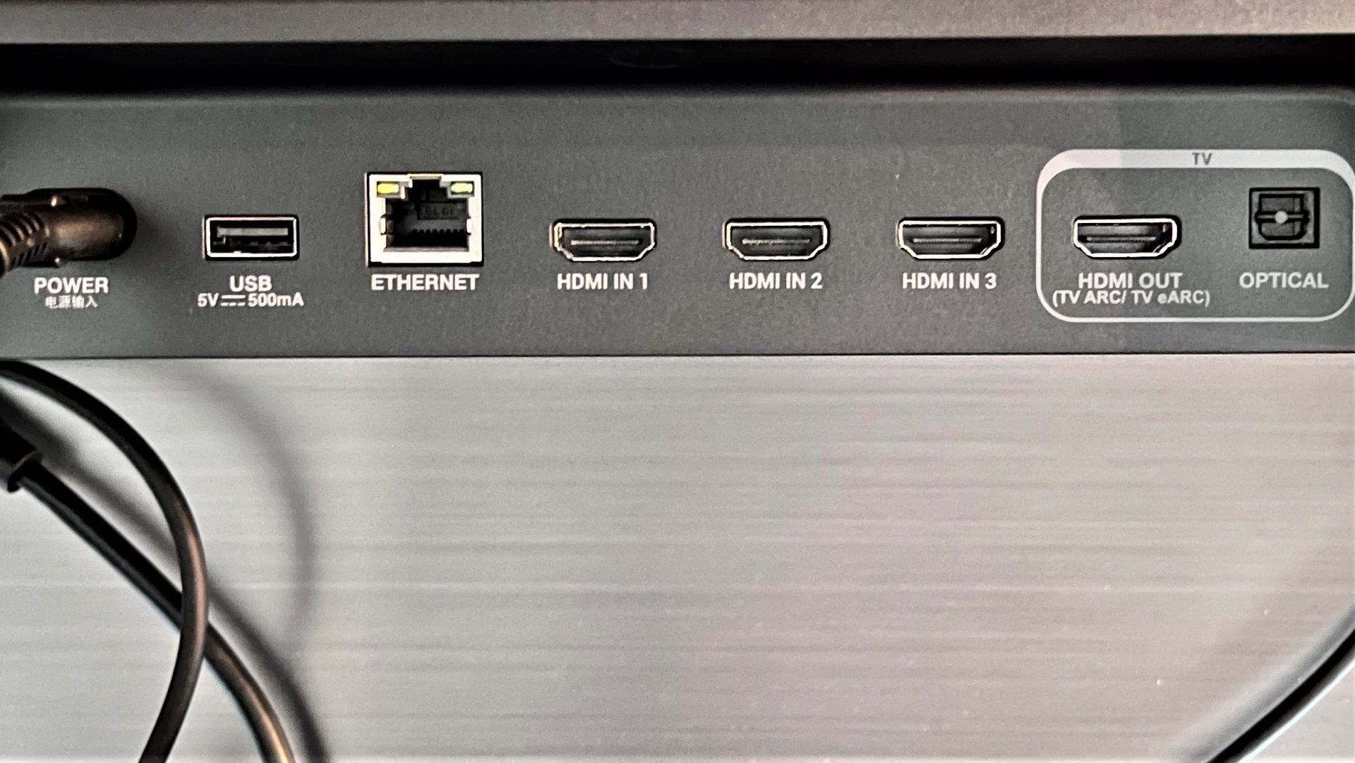 - Разъемы: 1 HDMI eARC выход, 1 HDMI вход, оптический, USB, 3,5 мм AUX