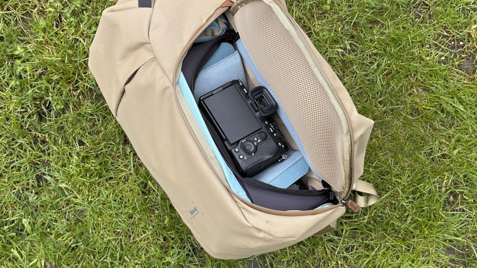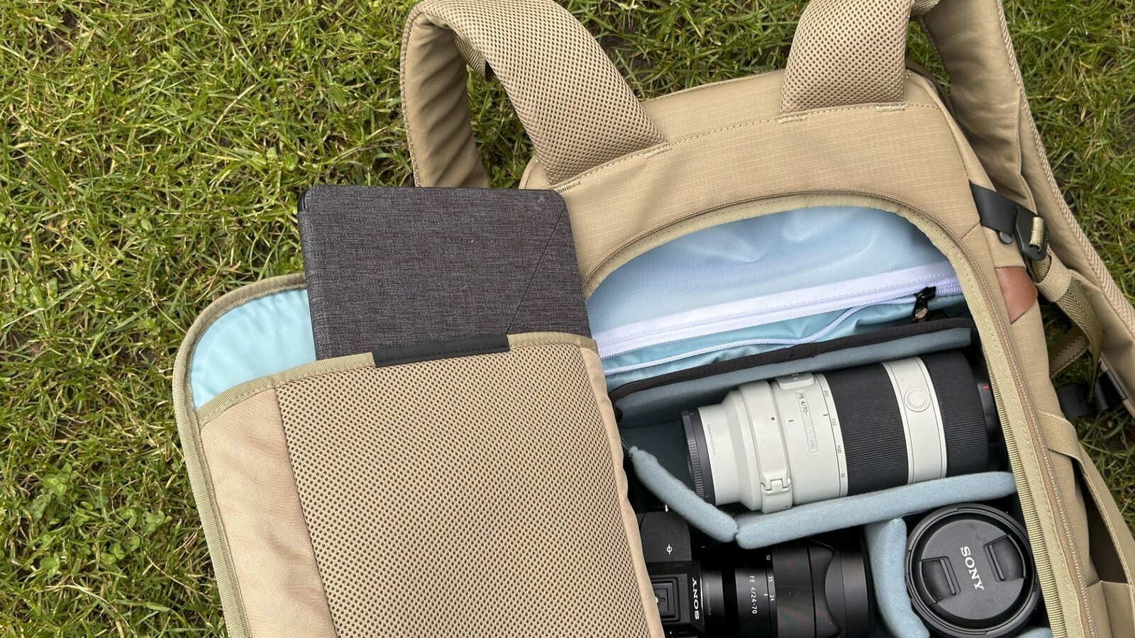Этому способствуют и удобные плечевые лямки, хотя серьезные любители походов будут сетовать на отсутствие поясного ремня. Мягкий отсек для камеры вмещает немало оборудования: мы упаковали в него Sony A7 IV с объективом FE 24-70mm f/4, а также три других объектива и вспышку. Только если вы носите с собой несколько крупных объективов, вам стоит присмотреться к большей, 30-литровой версии. Мы также сочли полезной возможность доступа к оборудованию через заднюю панель или боковой клапан.