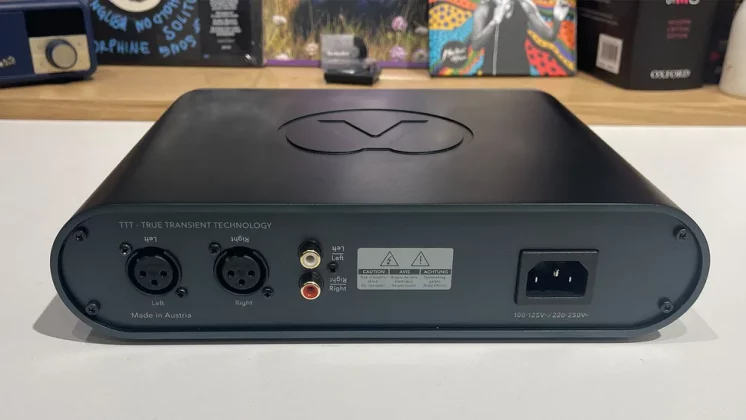 Компактное устройство, удобное для размещения на рабочем столе, размером примерно с книгу в твёрдом переплёте, прекрасно сделано и удобно в использовании. На передней панели изогнутого металлического корпуса расположены два разъёма 6,3 мм, а под откидной крышкой — 4-контактный балансный выход XLR. На задней панели вы найдёте входы RCA и XLR для подключения аналоговых источников.