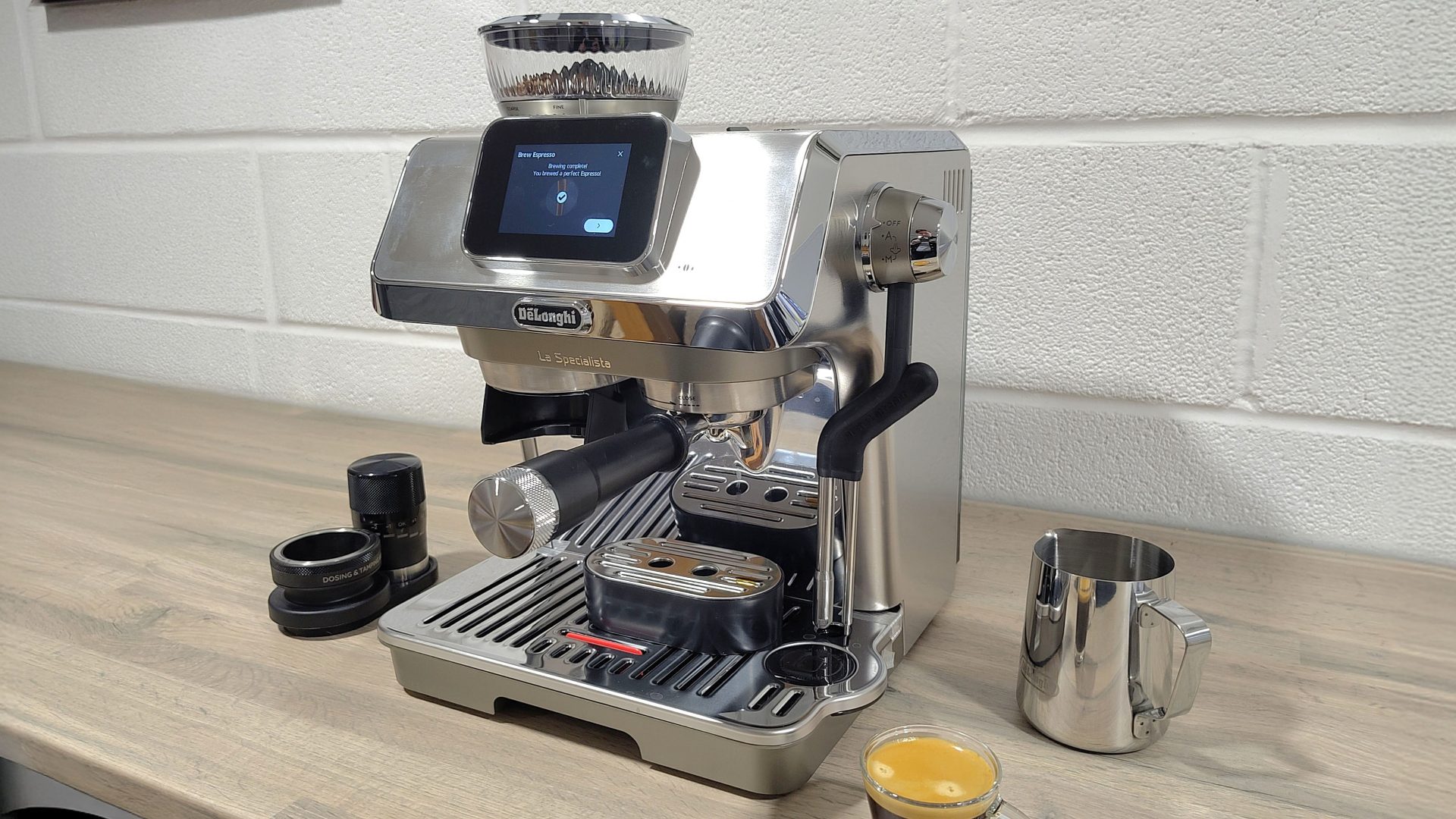 La Specialista Touch — также отличный выбор, если вы ищете зерновую кофемашину, удобную для новичков. Она не полностью автоматическая, как, например, Smeg Mini Pro, но ее умные инструменты для дозирования и темперовки позволяют легко создать хорошо сформированную кофейную таблетку для стабильных результатов (одна из самых сложных вещей для освоения при приготовлении эспрессо).
