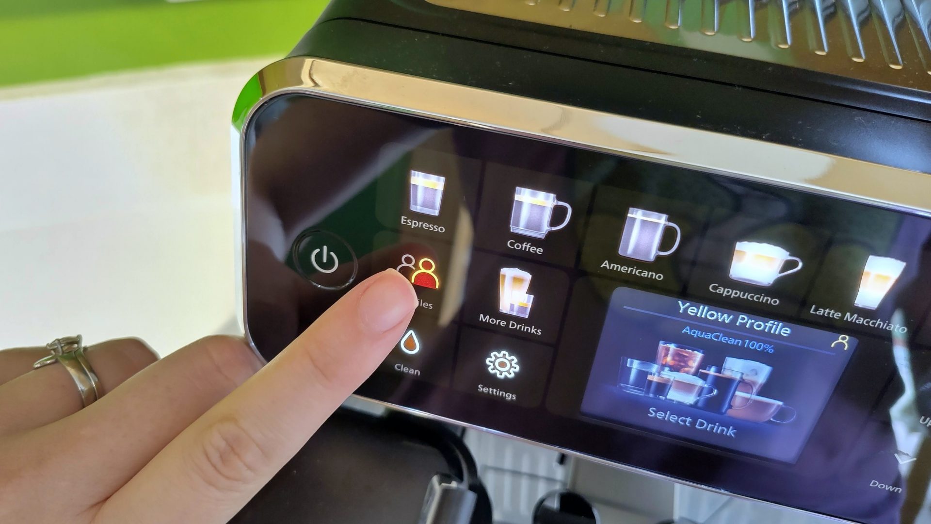 Во время моих тестов эспрессо был очень хорошо экстрагирован, и было легко возиться с размером помола, поворачивая диск внутри контейнера (есть 12 вариантов размера), и настройками заваривания с помощью экранных подсказок. Самые популярные напитки имеют специальные кнопки на передней панели машины, и вы можете получить доступ к расширенному меню, нажав «больше напитков», а затем выбрав горячий или холодный.