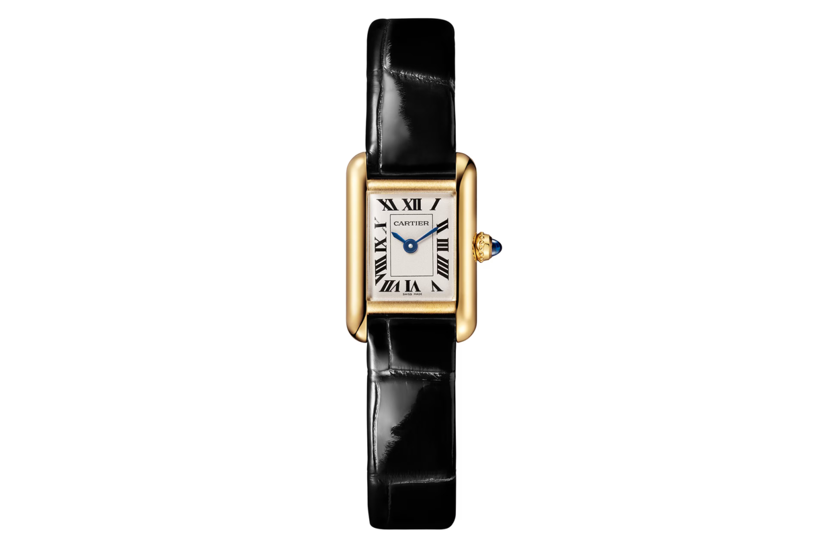 Cartier Tank Louis Cartier Mini — элегантные, как шелковый шарф, и вневременные, как маленькое черное платье, эти миниатюрные Tank — чистая поэзия на запястье: золото, минимализм и непринужденный французский шарм.