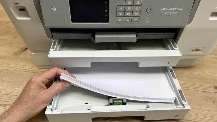 Благодаря двум лоткам для бумаги, вмещающим 750 листов, и совместимости с большими картриджами Brother с высокой производительностью, он обладает достаточным запасом бумаги и чернил для интенсивной работы. Также имеется модуль NFC для безопасной печати и большой сенсорный интерфейс для упрощения работы. Он не такой быстрый, как лазерный принтер, но предлагает гораздо больше функций.