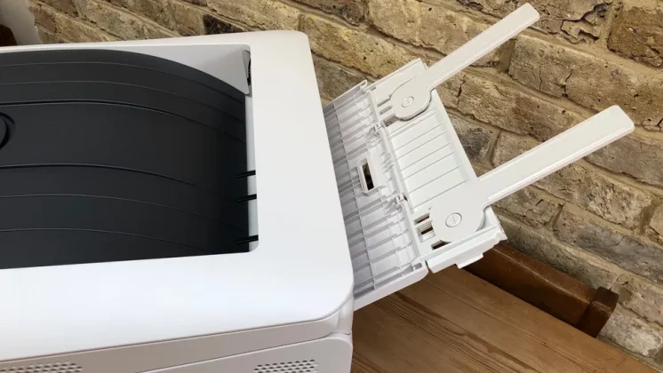 Но имейте в виду, что это тяжёлый принтер, который занимает много места — вам понадобится как минимум квадратный метр площади, потому что при открытии лотка для бумаги ширина увеличивается примерно на 40 см.
